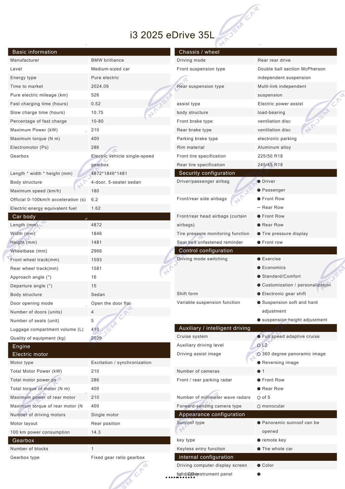 BMW i3 is an all-electric 3 Series with rear-wheel drive, single motor, 210kw of maximum power, 400nm of maximum torque, 6.2s of zero hundred acceleration, and 526km of CLTC range. It has a battery pack at the bottom, so the center of gravity of the i3 will be lower compared to the 3 Series. And BMW has equipped the i3 with rear-axle air suspension and a rear anti-roll bar, so the i3 is particularly stable when driving on mountain roads.