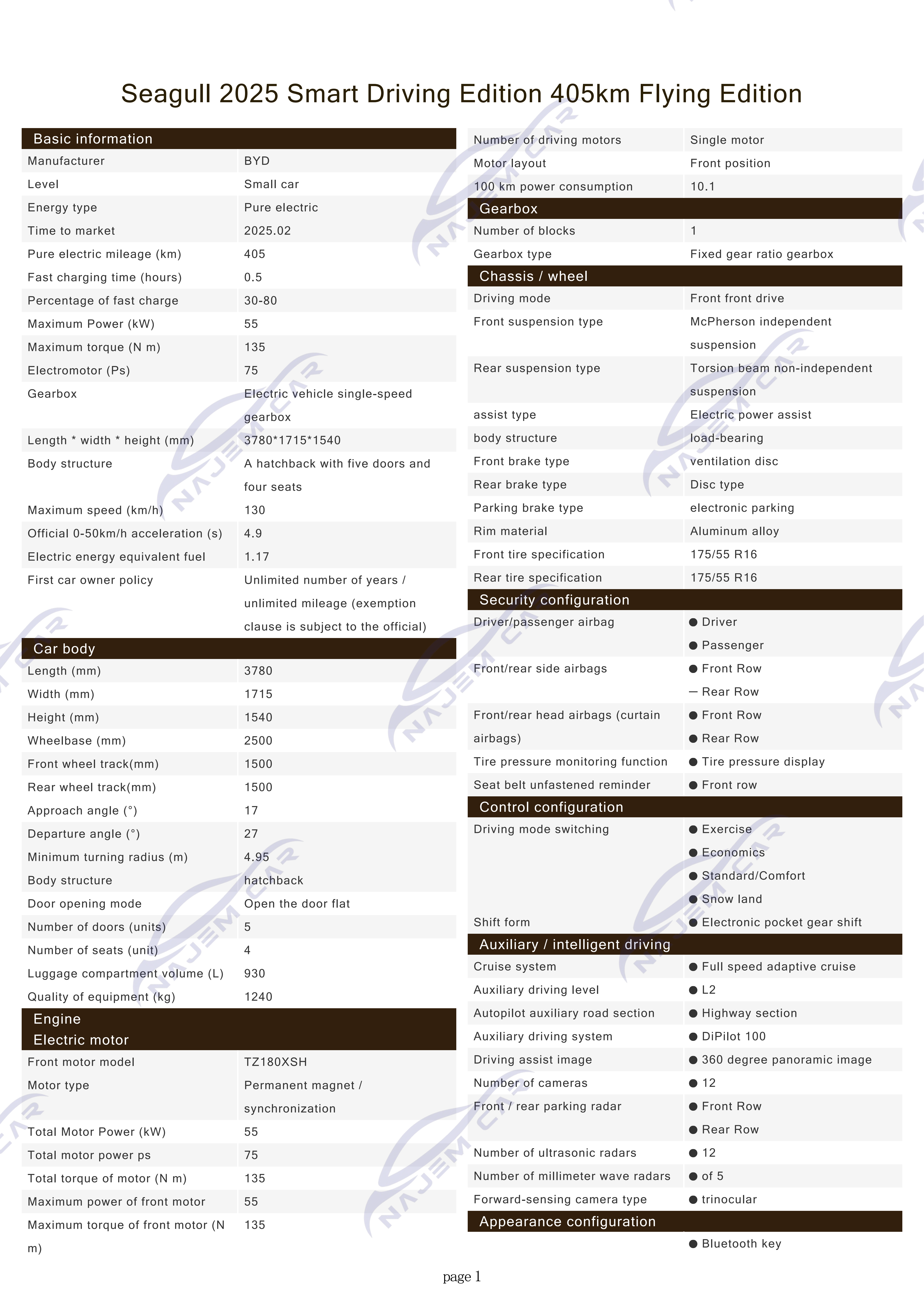 Seagull adopts BYD’s self-developed motor, only one power version, maximum power 55KW, maximum torque 135Nm, enough to drive a small car, top speed of 130km / h, compared with the price of most of the cars in the same price range of 100km / h, Seagull in addition to driving in the city, the city’s fast arterial roads or cross-city highway can also be easy to cope with.