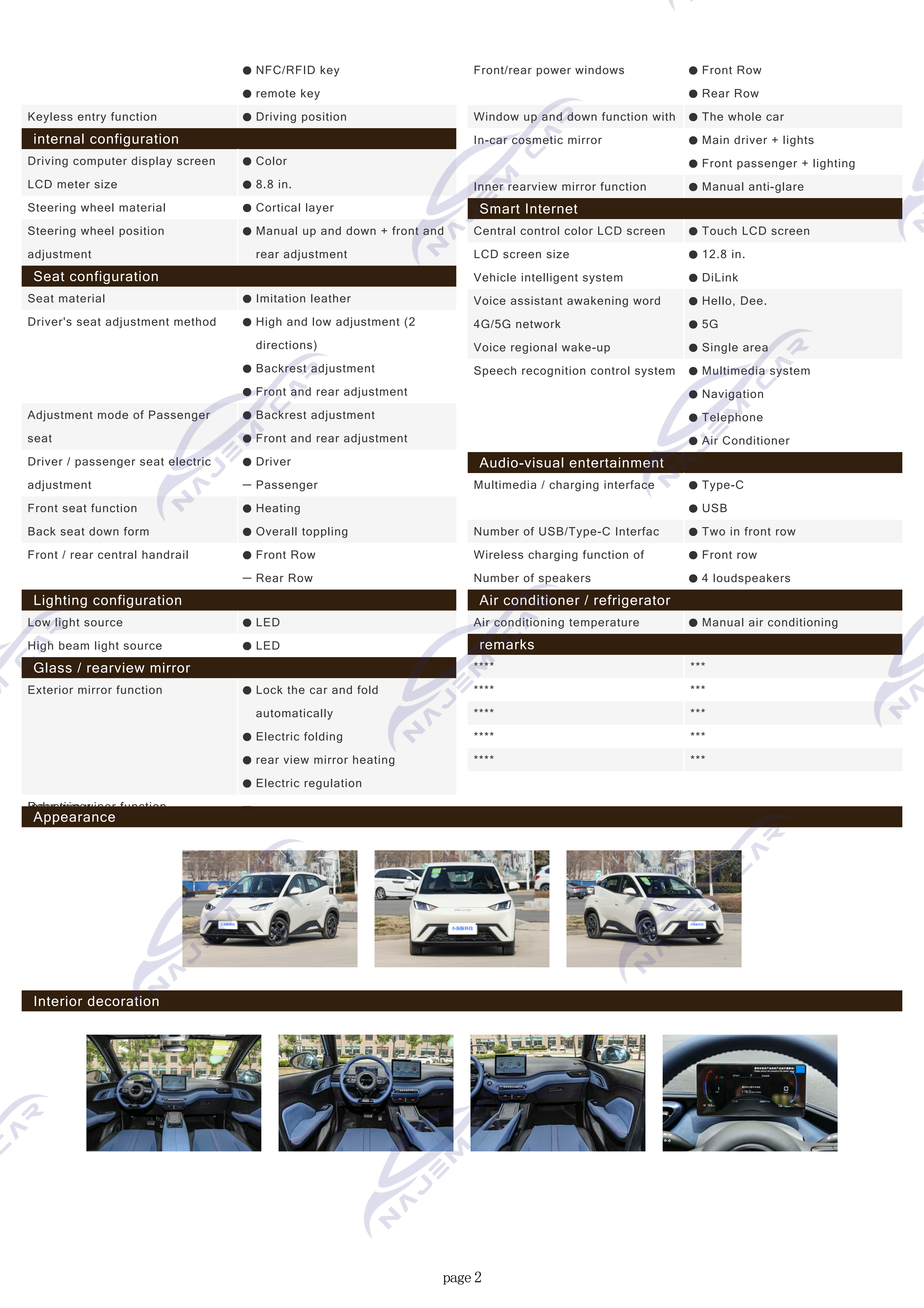 The Seagull has a multifunctional sports style steering wheel, and the T-zone is equipped with a wireless charging configuration for cell phones. The size of the center control screen is 10.1 inches, supports auto-rotation, and is equipped with DiLink operating system.