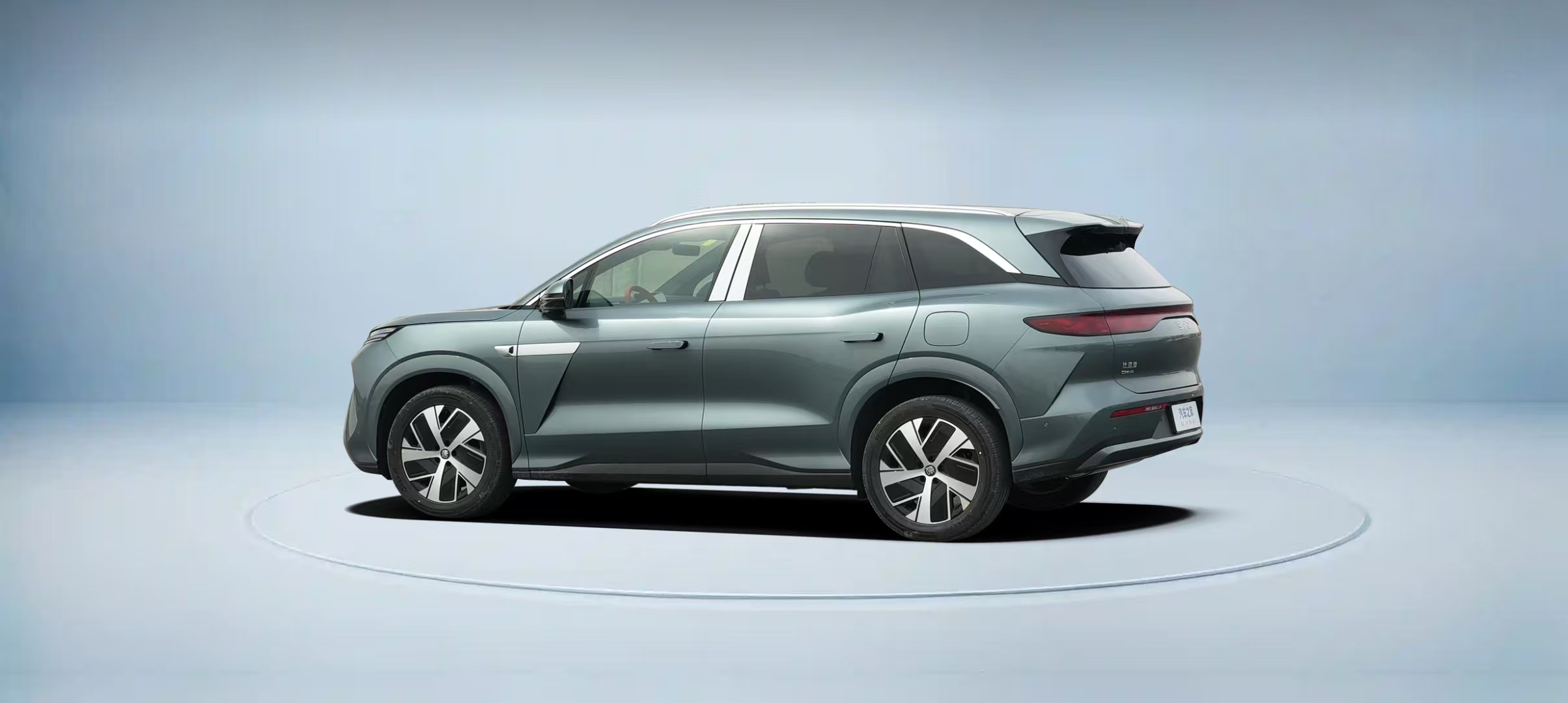 The side profile of the Tang L is extremely bold, with a silver trim added to the front fenders and doors, and a design resembling side air vents on the doors, giving it a strong sporty appearance. As a new energy vehicle, hidden door handles are a must.