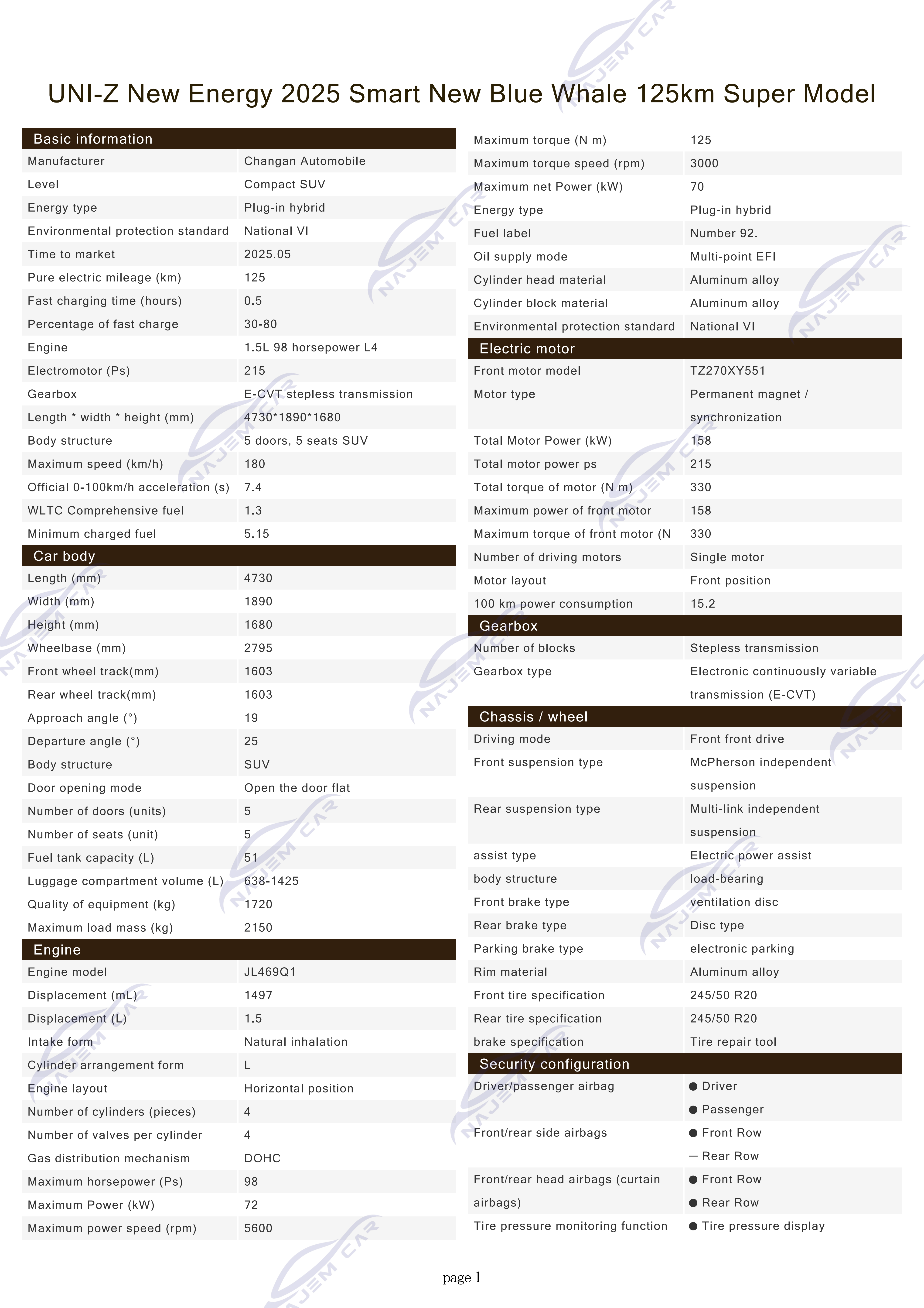 The Changan UNI-Z iDD is equipped with the new Blue Whale power platform, the new Blue Whale hybrid high-efficiency special engine and the dual motor electric drive system, with a pure electric range of 125km. in the actual test, the range of the car reached 179.8km, with a high range attainment rate of 143.8%. The maximum power of the electric motor is 158kW, the maximum torque is 330N-m, and the acceleration time from 0-100km/h is 7.4 seconds. In actual driving, the Changan UNI-Z New Energy has plenty of power, with excellent starting and overtaking performance.