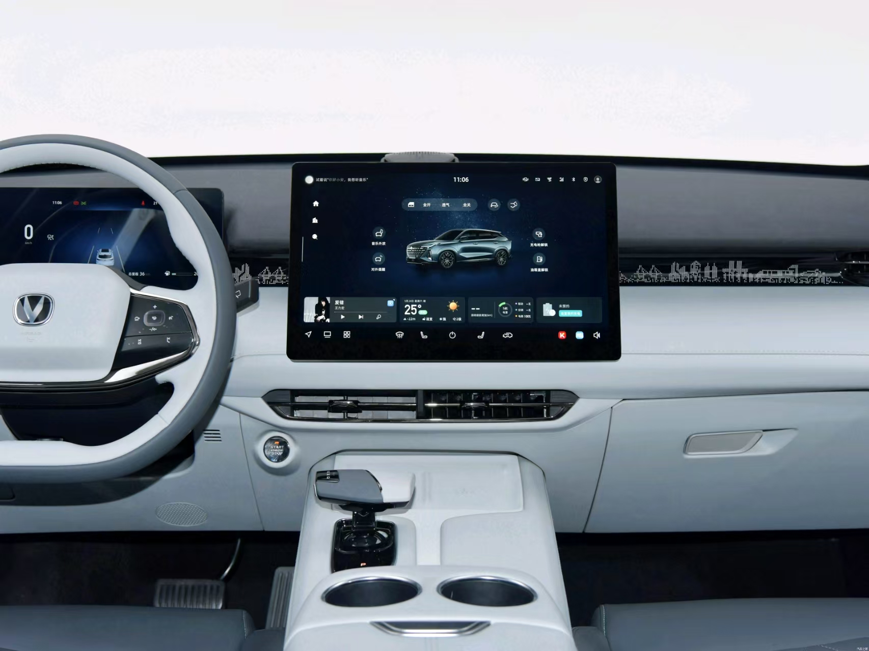 The Changan UNI-Z iDD adopts a horizon-style center-control design, which is simple and atmospheric. The two large floating screens and electronic gear knob inside the car enhance the sense of technology. The dual-patchwork color layout, stitching process and the use of leather materials also add a sense of class to the interior. In terms of space, the length, width and height of Changan UNI-Z New Energy are 4730mm, 1890mm and 1660mm respectively, with a wheelbase of 2795mm, positioning it as a compact SUV, but its actual dimensions are close to those of a medium-sized SUV.The front and rear rows are spacious, especially the rear rows have excellent leg and lateral space performance, and the ventilation function of the front seats that is standard for the whole system has greatly improved the comfort of the car in summer.