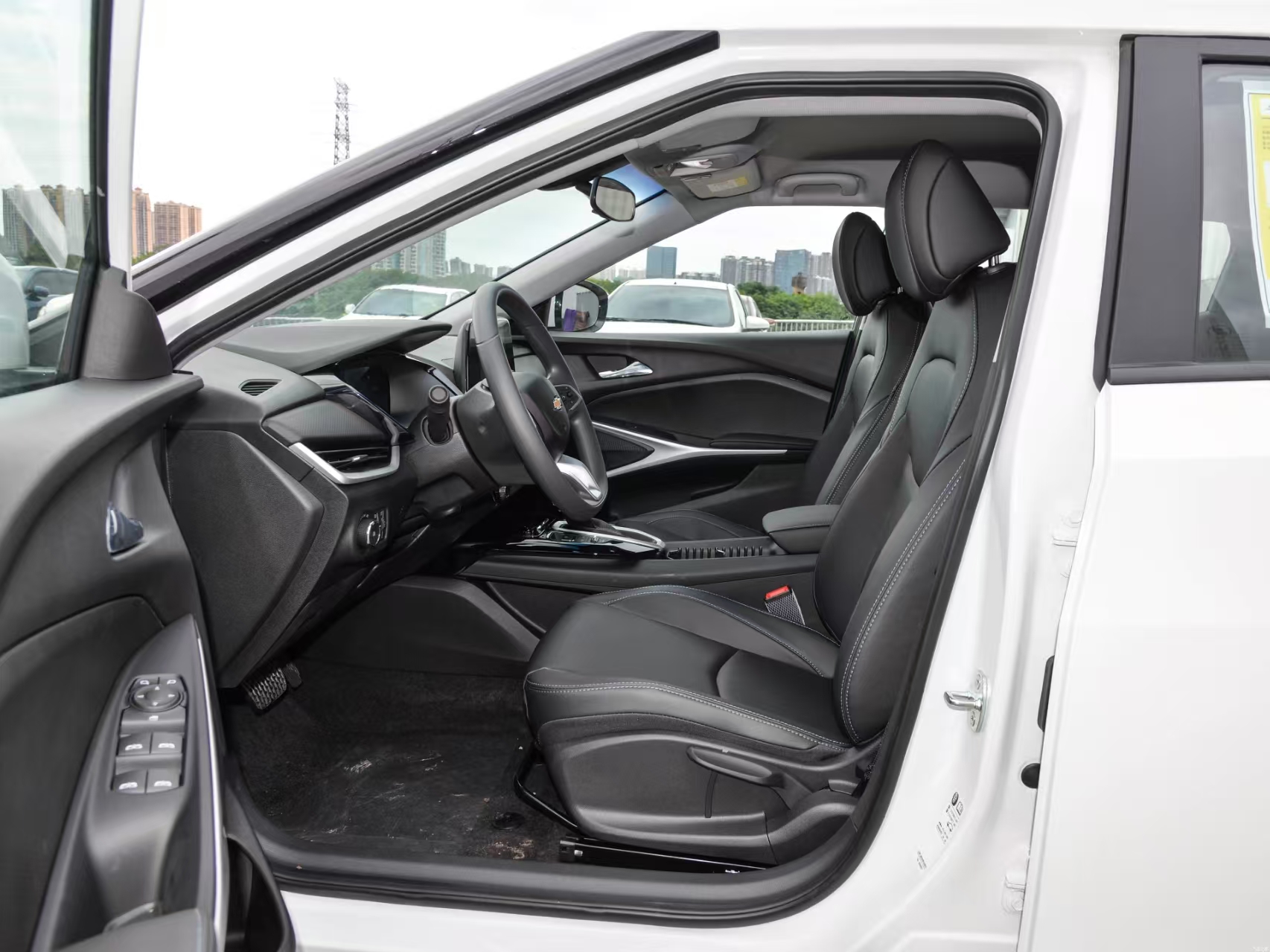 The center console adopts a multi-layer design, utilizing dynamic sculptural surfaces to enhance the overall spatial sense of the cabin by extending the horizontal visual proportions. 10.1-inch full LCD touch screen with ultra-thin floating design, the overall translucent and thin, coupled with the 8-inch full-color LCD instrument panel, together with the ambient lighting embellishments, presenting a sense of full of science and technology. The three-dimensional tailored seats use double-layered design in the shoulder and lumbar area to provide the ultimate wrapping sense and perfect lateral support, while the seats use biodegradable environmental protection leather in a large area, with dynamic linear technological graphic pattern to provide the most comfortable ride perception; the center armrest adopts novel leaping layer design, with three-dimensional division of the storage function.