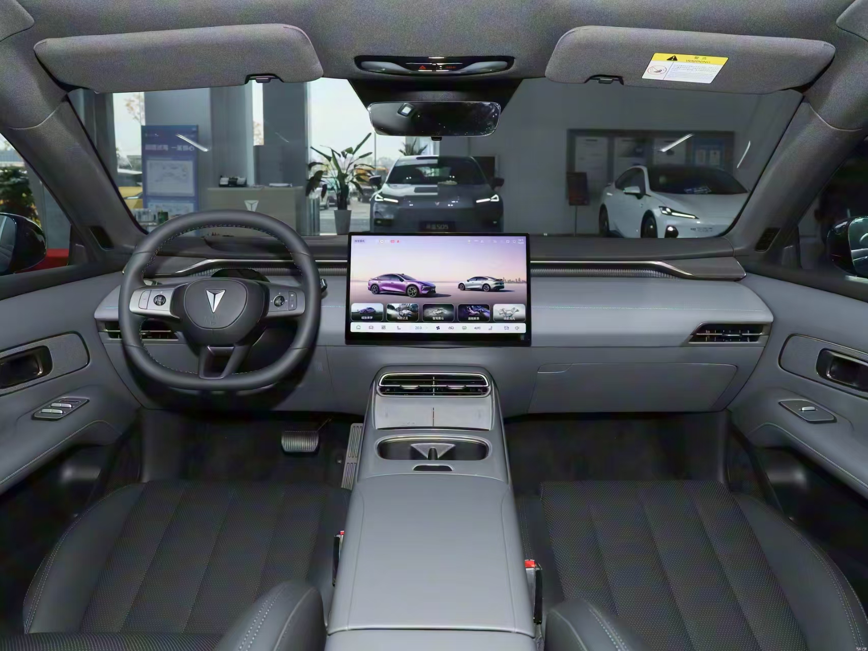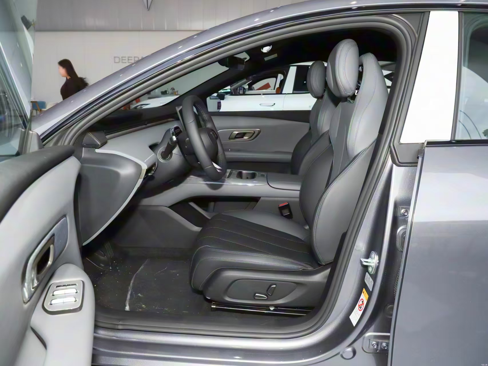 The Deepal L06 seats and dashboard are accented with color-blocking embroidery, offering 90 percent interior upholstery coverage with eco-grade PU flex-skin on the seats. The vehicle is available in three interior colors: Shubuki Purple, Smoke Crystal Mist Gray and Moonstone White. At the same time, the new car is equipped with a 15.6-inch 2.5K sunflower center control screen that supports 13° intelligent left-right deflection to achieve automatic switching between the main and passenger viewing angles, as well as a 50-inch AR-HUD head-up display. The vehicle is equipped with Tengui cockpit equipped with S1 Ultra 3-nanometer vehicle-grade cockpit chip, the center control sliding, zooming, switching applications smoothly and smoothly, multi-tasking parallel still silky smooth.