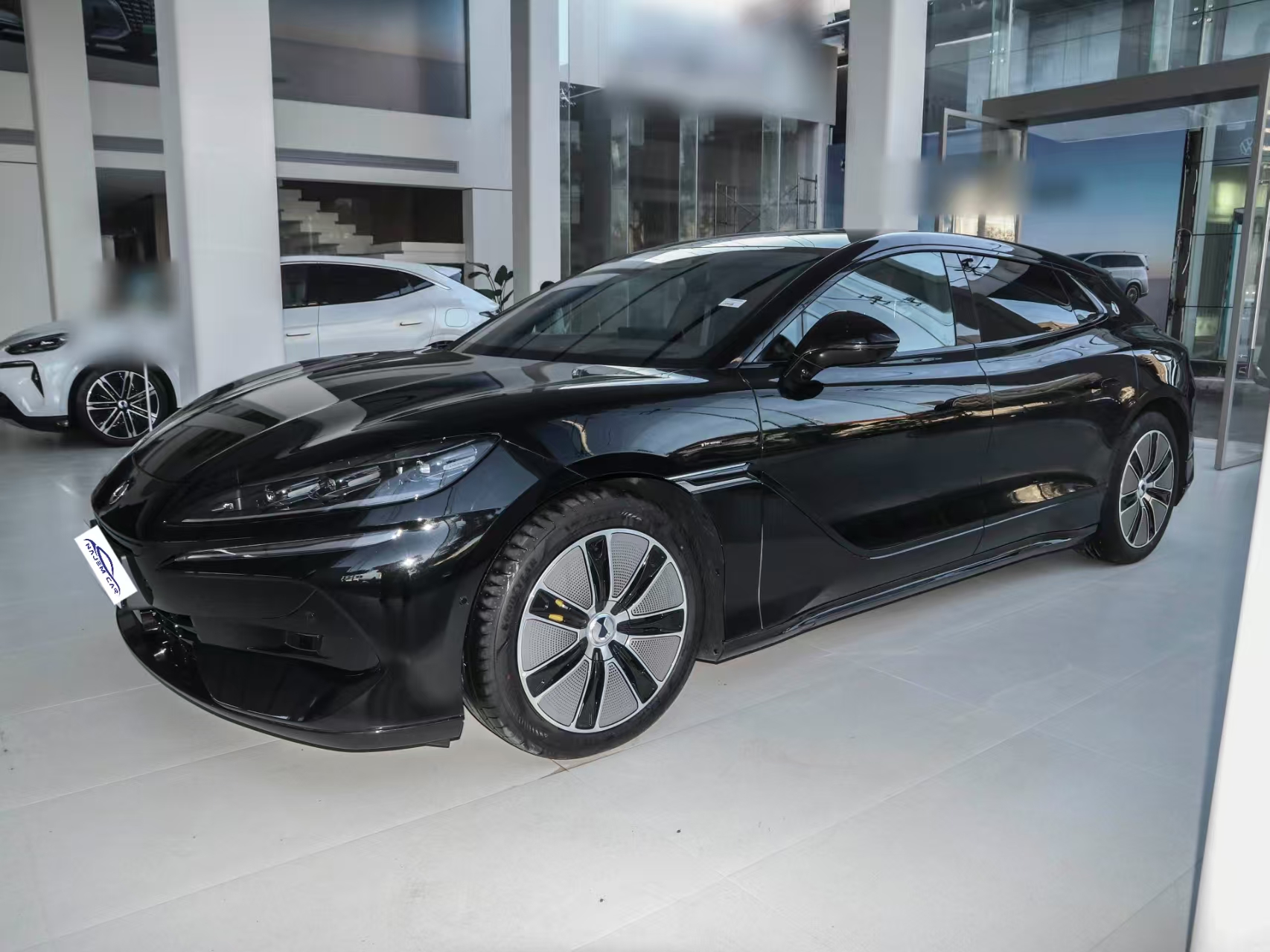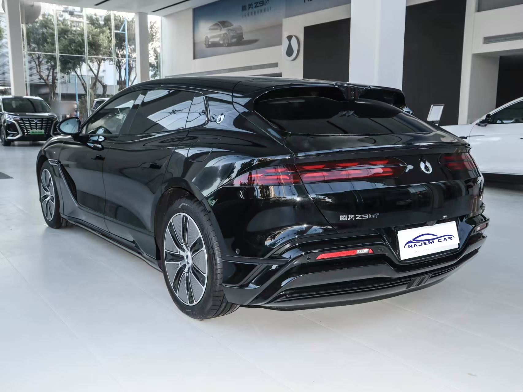 The Denza Z9 EV is a mid-size sedan under the Denza brand, and its overall exterior styling follows the design elements of the currently available Denza Z9 GT, with standard LED headlight clusters and support for adaptive high and low beams, as well as follow-the-lead steering function, which will follow the steering wheel to turn, reducing the blind spot when turning at night and improving safety. The Denza Z9 EV has hidden door handles on the side and dense spandrel wheels, creating a good sense of premium, hidden door handles are also used in some models of Denza. The rear of Denza Z9 EV is designed as a three-compartment vehicle, while the rear of Denza Z9 GT is designed as a two-compartment vehicle. The combination of the roof and rear of Denza Z9 EV is more rounded, presenting a small backward style, and the internal light source structure of Denza Z9 EV presents a dot-matrix design.