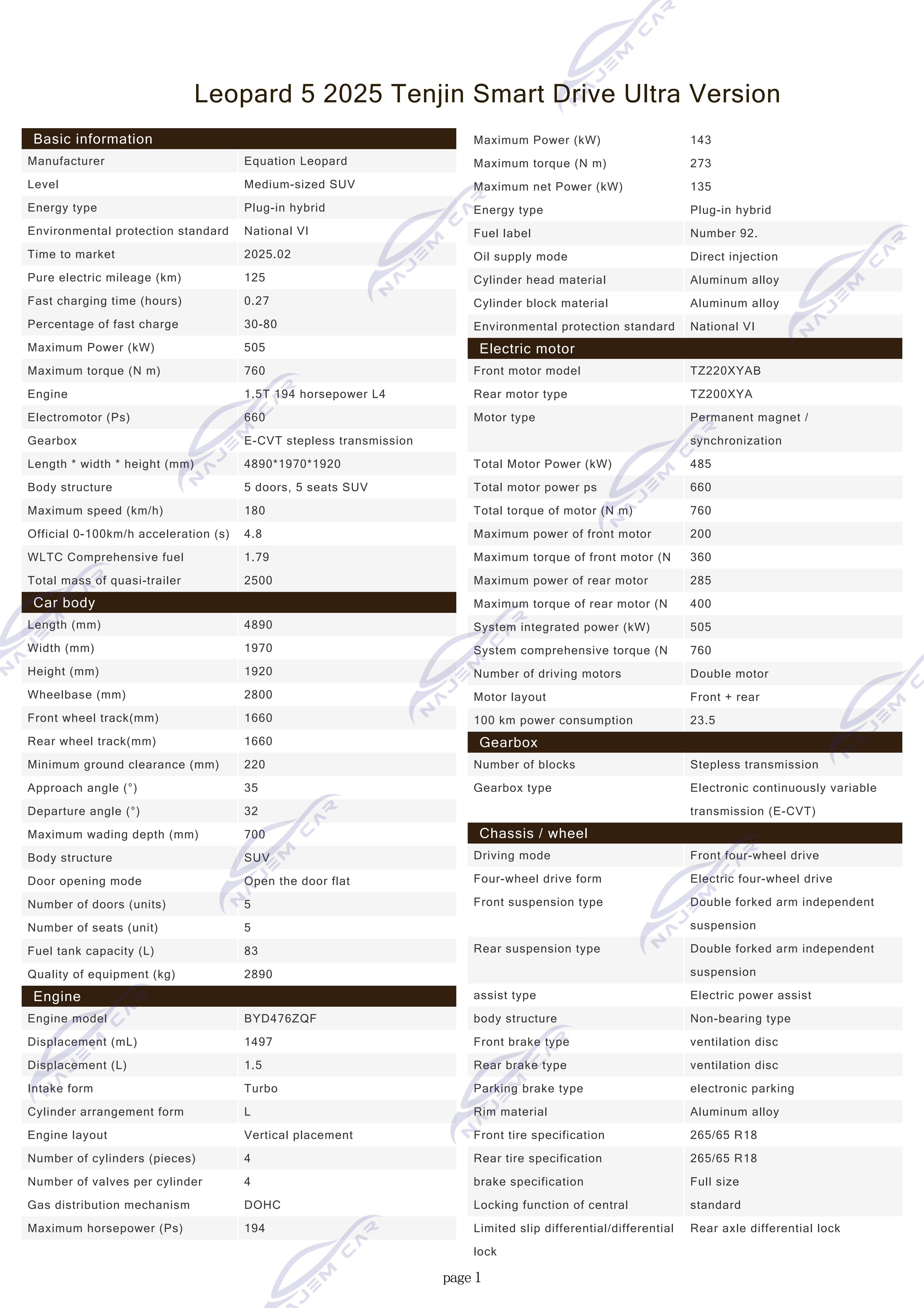 Leopard 5 is the first model of BYD’s Fangcheng Leopard automobile, equipped with a DMO super hybrid off-road platform, including a new hybrid non-load-bearing architecture and off-road special hybrid architecture, to provide off-road performance for the vehicle. The Leopard 5 measures 4890/1970/1920mm, with a wheelbase of 2800mm, and its core technologies include the “Leopard Power” technology, which realizes a system power of more than 500kW through the DMO super hybrid off-road platform, and an acceleration time of 4.8 seconds from zero to 100.