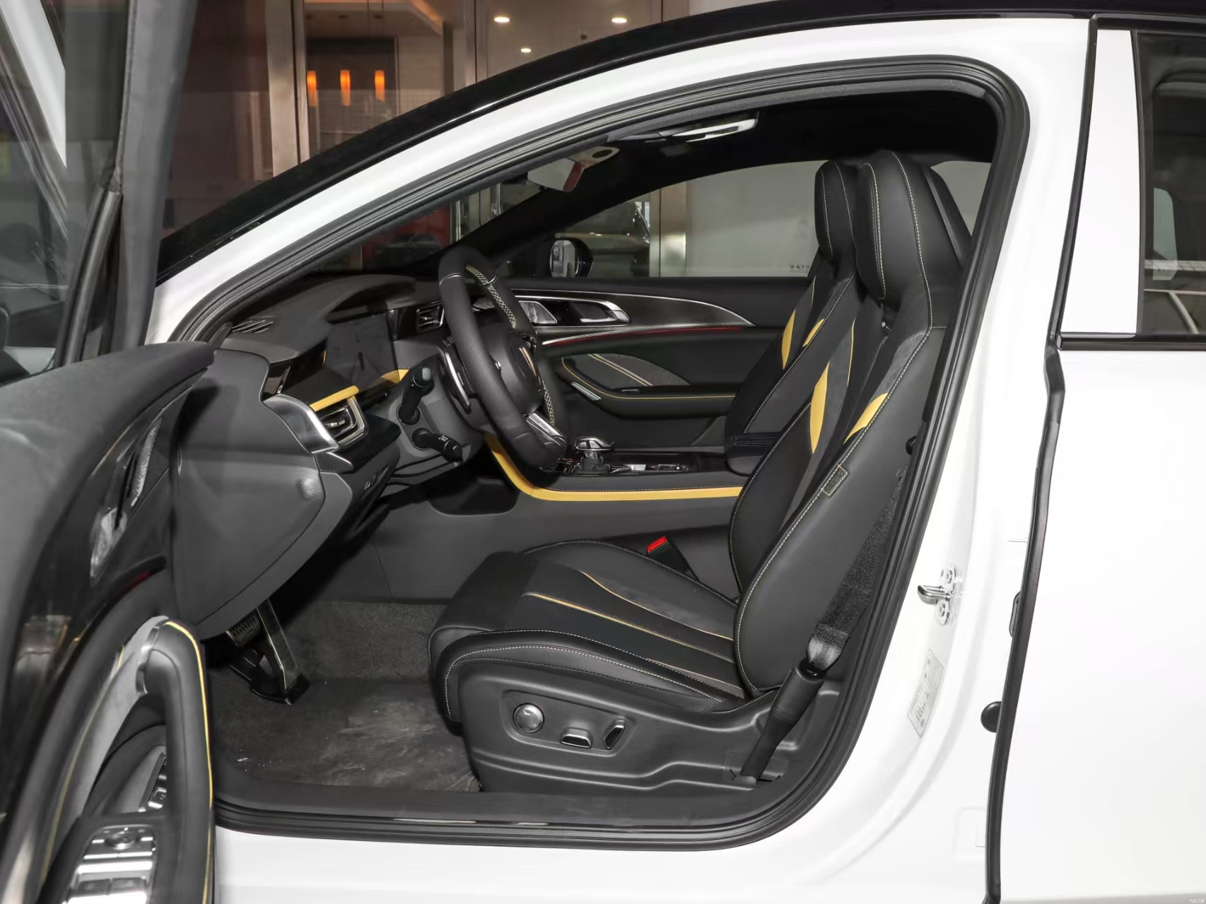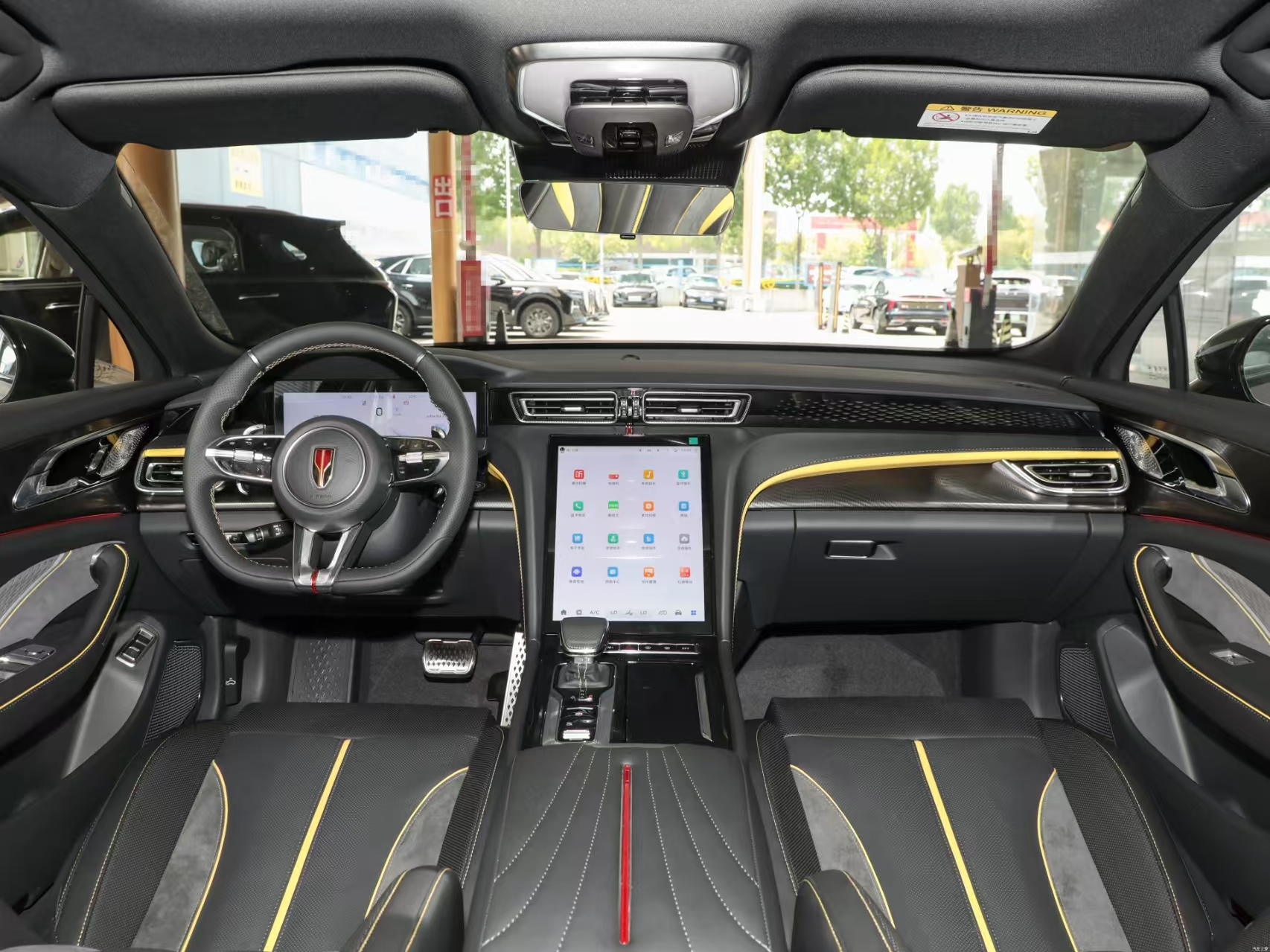 Sitting inside the car, the interior design of Hongqi H6 is also eye-catching. Embracing cabin layout, the use of a large number of soft materials and leather wrapped, soft and comfortable touch, with exquisite stitching technology, creating a luxurious driving atmosphere. The three-spoke flat-bottomed multifunction steering wheel has a comfortable grip and integrates a variety of function buttons for convenient operation. 12.3-inch full LCD instrumentation and 12.6-inch floating center control screen comprise a dual-link screen system with a clear display and a simple and beautiful interface design, and the Hongqi Intelligent Link 4.0 system is equipped with a support for 5G networks, OTA remote upgrades, and voice control of 11 functions, which improves the smoothness of operation and responsiveness significantly, bringing the driver a convenient and intelligent driving experience. The system brings drivers a convenient and intelligent interaction experience. The one-piece sports style front seats have good wrapping and support, effectively relieving driving fatigue. In addition, the car is equipped with 253-color ambient lighting, which can be adjusted according to different driving modes and personal preferences, creating a romantic atmosphere inside the car.