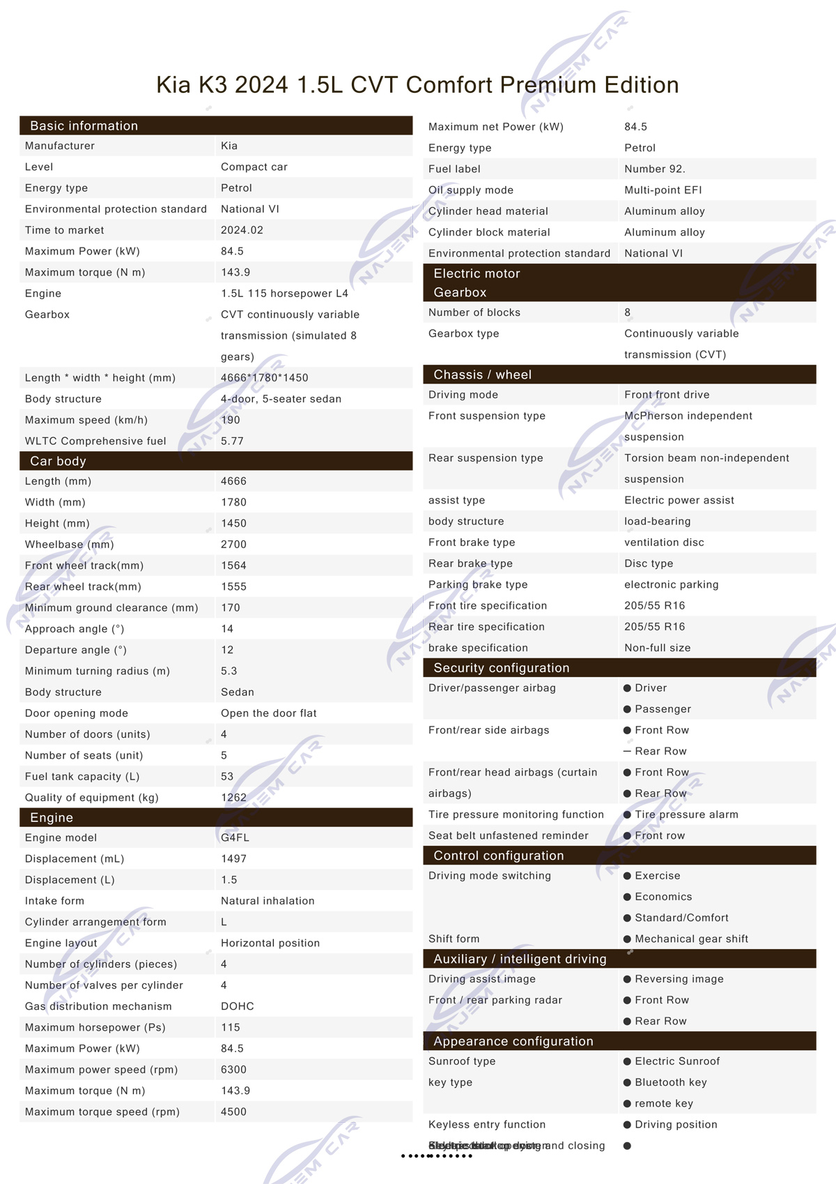 Kia K3 is an entry-level compact coupe created by Kia, which has gained high popularity among young consumers with its avant-garde and stylish appearance, rich intelligent and connected technological configurations, as well as class-leading safety technologies as soon as it was launched.