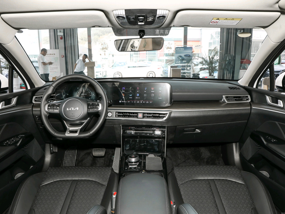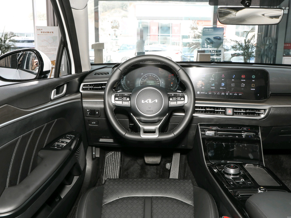 The Kia K5’s wraparound center console adopts a driver-centered design orientation; the 12.3-inch intelligent touchscreen and 12.3-inch ultra-wide instrument panel are designed in one piece.
