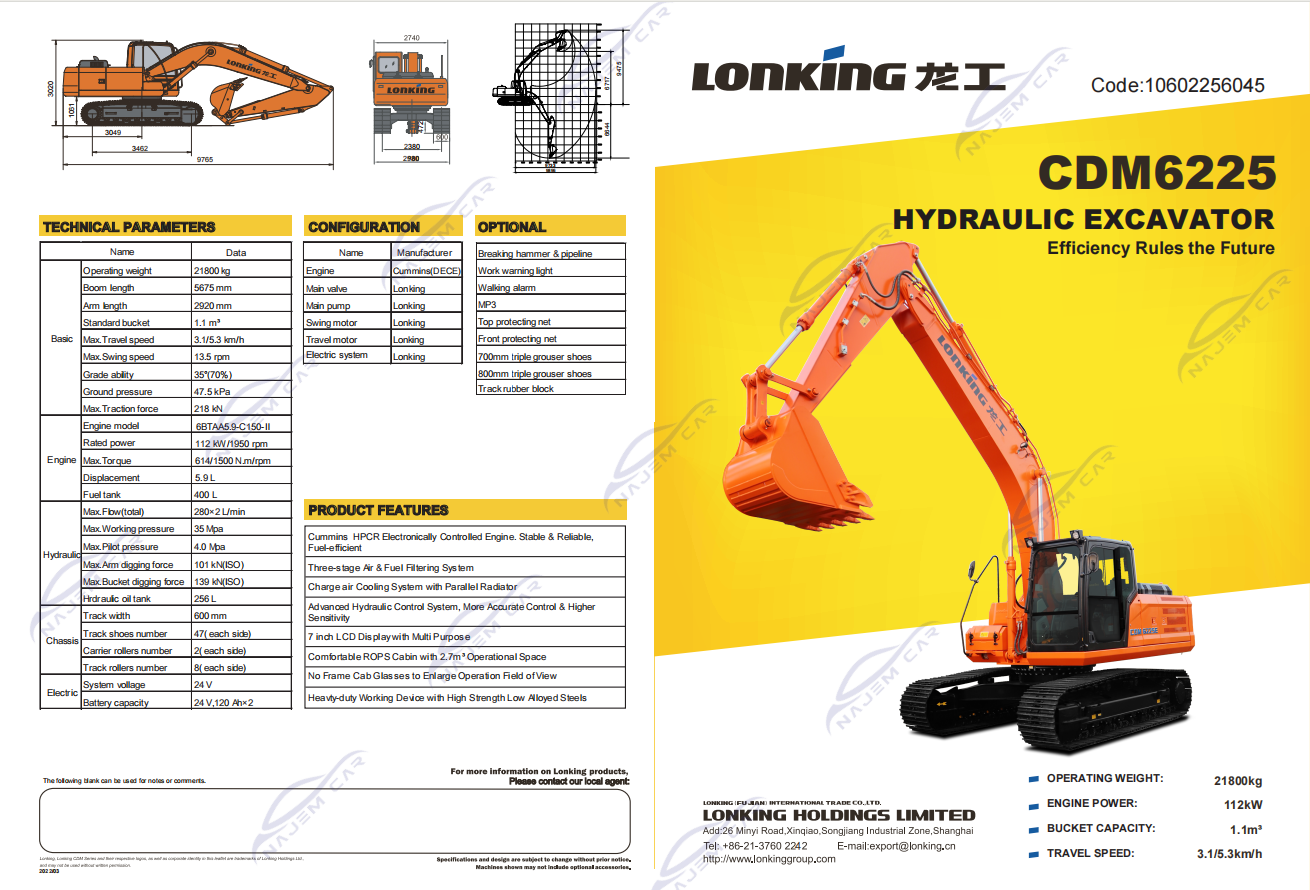 1. Powerful power: The excavator is equipped with a high-performance engine, which has a strong power output and can cope with various complex working conditions. two Efficient excavation capability: Excavators have fast excavation speed and strong excavation power, which can quickly complete excavation tasks and improve work efficiency. three Good stability: The excavator adopts a chassis design with good stability, which can maintain stability in different terrains and working conditions, and improve work safety. four Easy to operate: The excavator has a simple and clear operation panel and a user-friendly control system, making it easy to operate and reducing the difficulty of operation. five Comfortable cab: The excavator cab is spacious and comfortable, equipped with air conditioning system and shock-absorbing seats, providing a good working environment and riding experience. six Convenient maintenance: The excavator is designed reasonably, the layout of maintenance components is reasonable, easy to maintain and upkeep, and reduces maintenance costs and time. seven Good economy: The excavator adopts advanced fuel injection technology and energy management system, which can save fuel, reduce energy consumption, and improve economy. eight Multifunctionality: The excavator is equipped with various excavation accessories and working devices, which can meet different excavation needs and have high versatility.