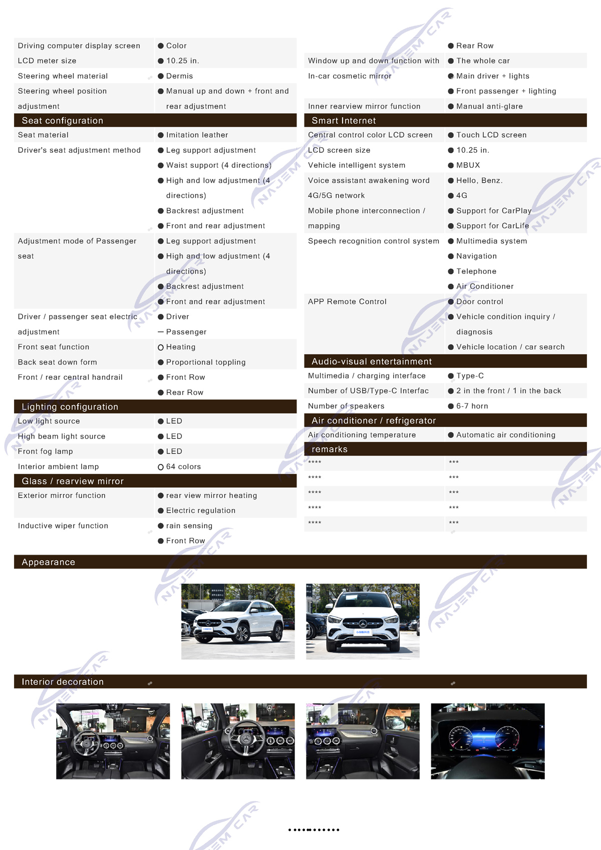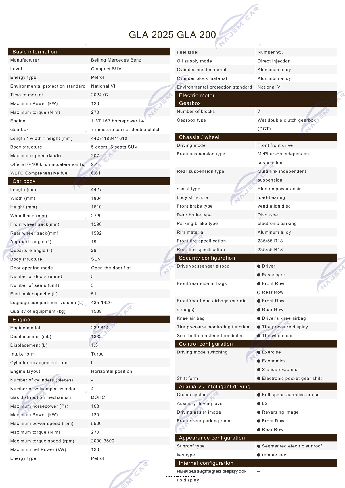 The Mercedes Benz GLA class is a compact SUV launched by Mercedes Benz, developed based on the MAF platform and sharing platform technology with A-class and B-class models. It is positioned as a mid to high end luxury crossover vehicle.