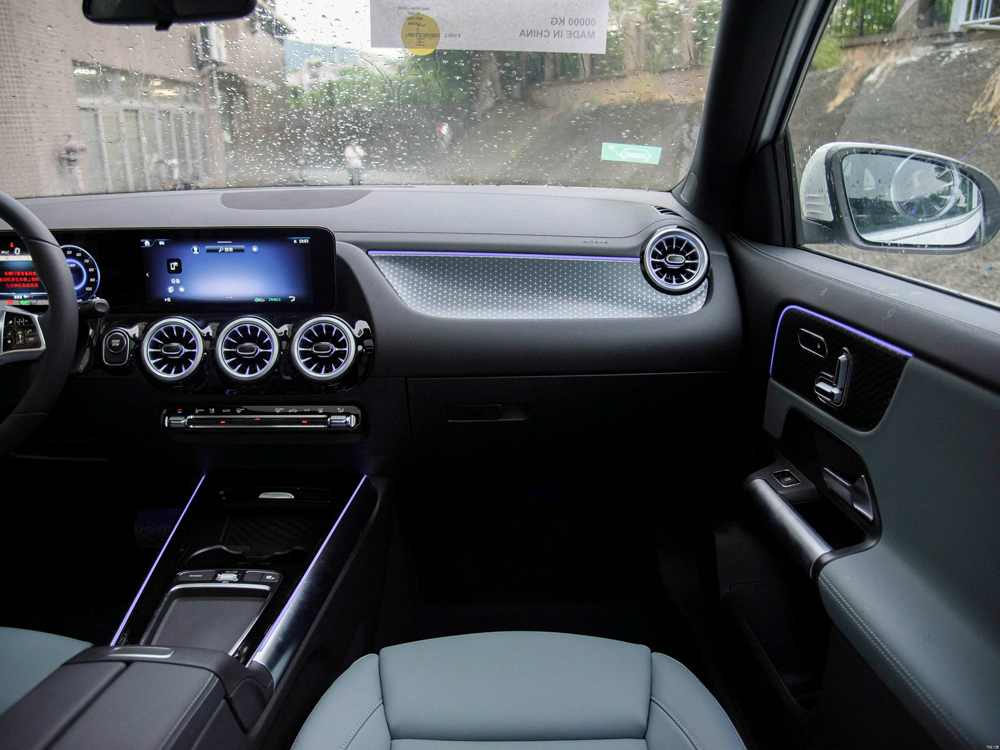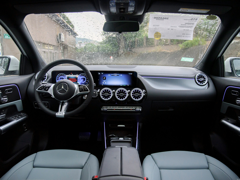 Interior-wise, the EQA offers a cockpit with a high-tech feel. The center console is equipped with a dual-screen design that includes a full LCD instrument cluster and a center touchscreen, providing drivers with a wealth of vehicle information and entertainment features. The Interior uses highly textured materials with 64-color ambient lighting to create a luxurious and comfortable interior atmosphere.