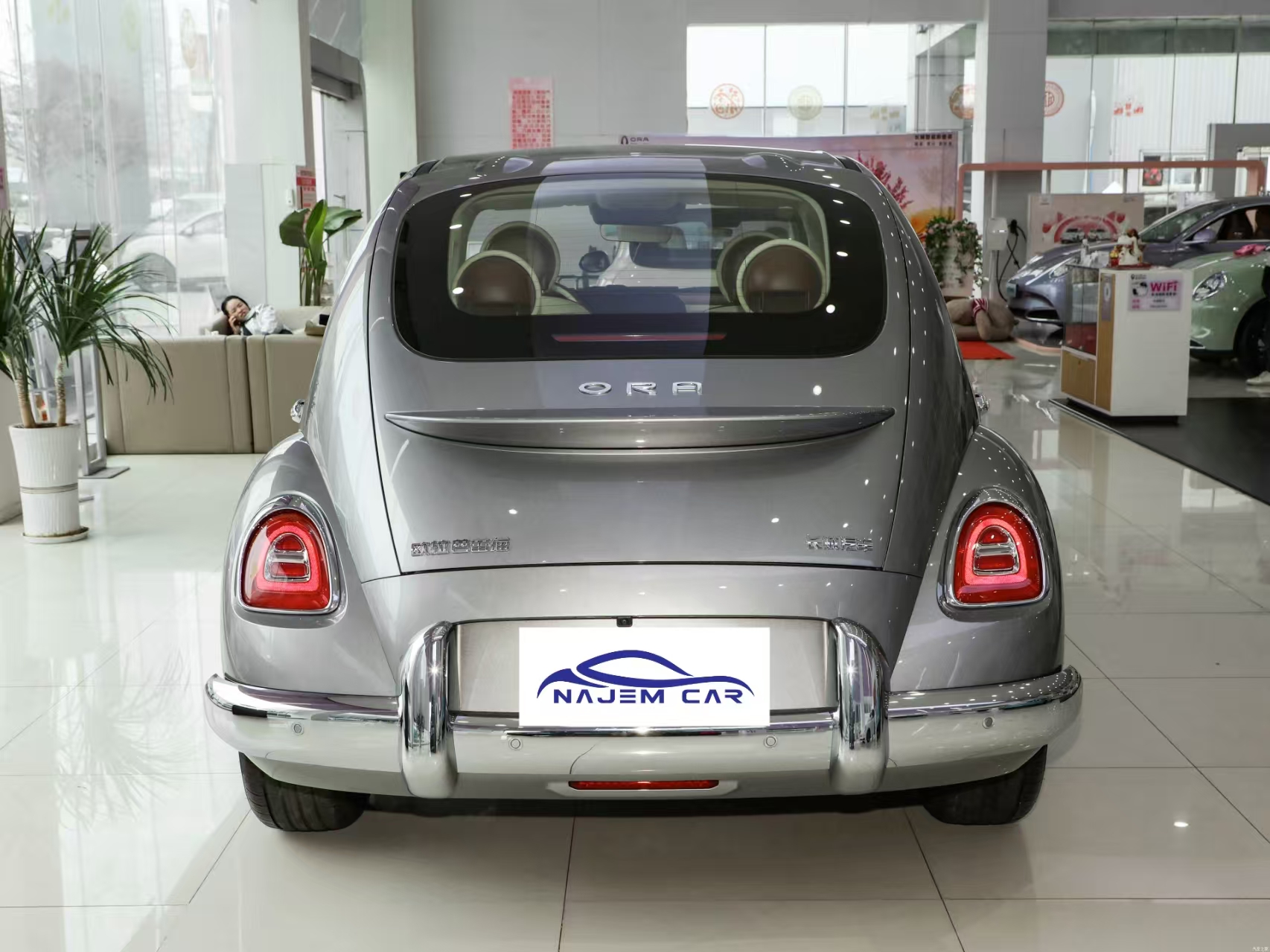As for the rear part of the car, Ora Ballet Cat adopts a privacy windshield edge design, and the unique big mouth black trim panel echoes with the tail lamp assembly, making a deep impression. The black trim panel has a unique and novel shape, echoing the front end, and the overall wrap-around cover design shows a delicate aesthetic, while there is also a rectangular license plate placement area in the middle, enhancing the overall aesthetics.