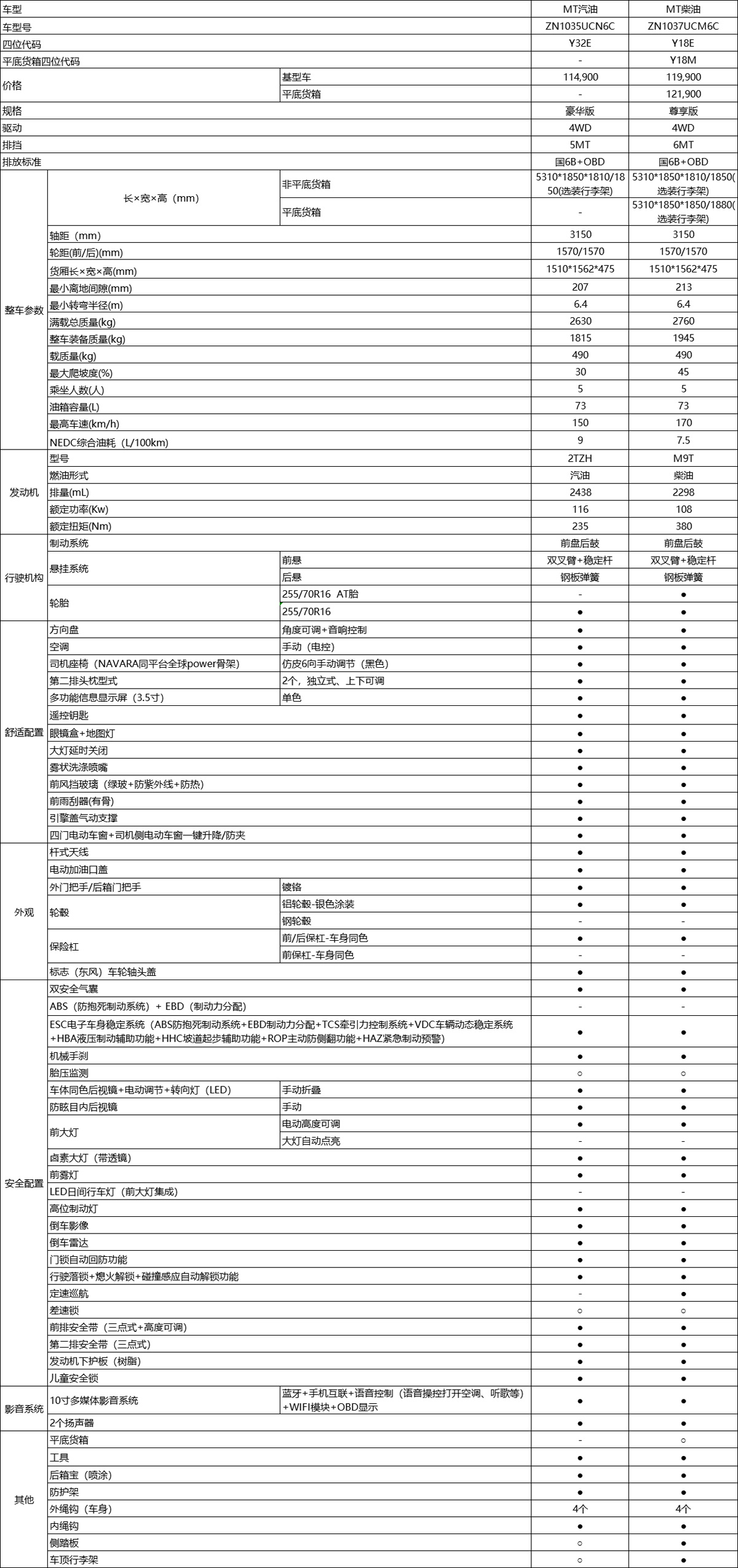 In terms of power, the new vehicle is equipped with an M9T diesel engine from the Renault-Nissan Alliance, with a maximum power output of 120kW and a peak torque of 380N·m. For transmission, it is paired with a ZF second-generation 8AT and a 6MT gearbox, with an official combined fuel consumption of only 7.3 liters per 100 kilometers.