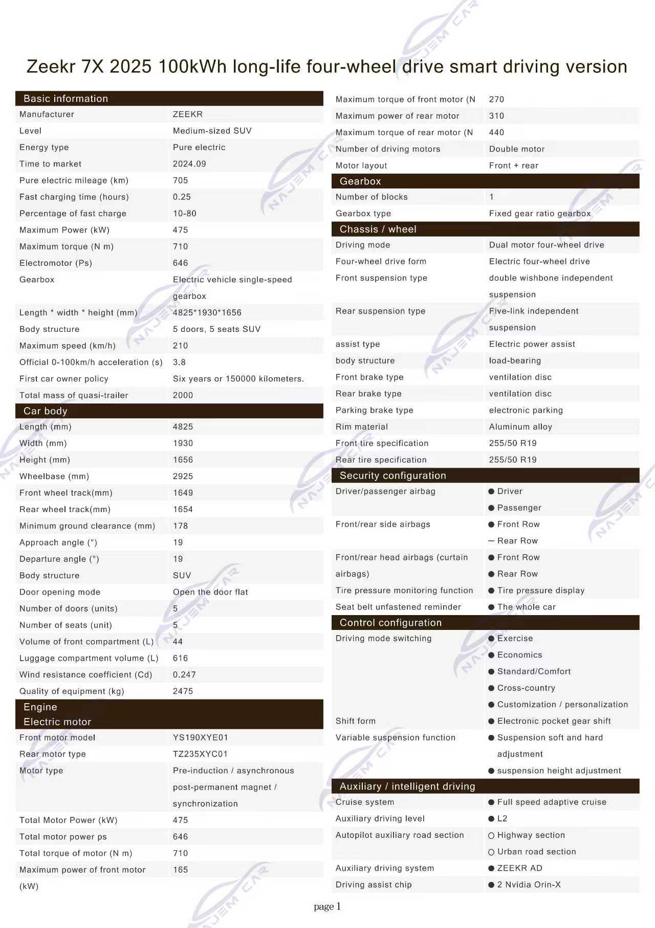 Zeekr X is the third car of Zeekr, based on SEA Vast Intelligent Evolutionary Experience Architecture. Zeekr X is led by renowned designer Steve Siraffe, and with the design concept of “Urban without Boundaries” and forward-looking technology innovation, Zeekr X interprets the original innovation and luxury beauty of the compact luxury car market. Zeekr X is equipped with a high-performance permanent magnet synchronous electric drive system, and the front and rear dual-motor layout provides powerful power for the entire vehicle, with a peak power of 315kW, peak torque of 543N-m, and acceleration from zero to 100 in just 3.7s, making Zeekr X the fastest compact-class luxury car ever.